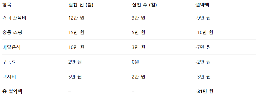 이렇게 절약한 돈은 비상금, 여행자금, 건강검진비, 부모님 용돈 등 더 의미 있는 곳에 사용할 수 있습니다.